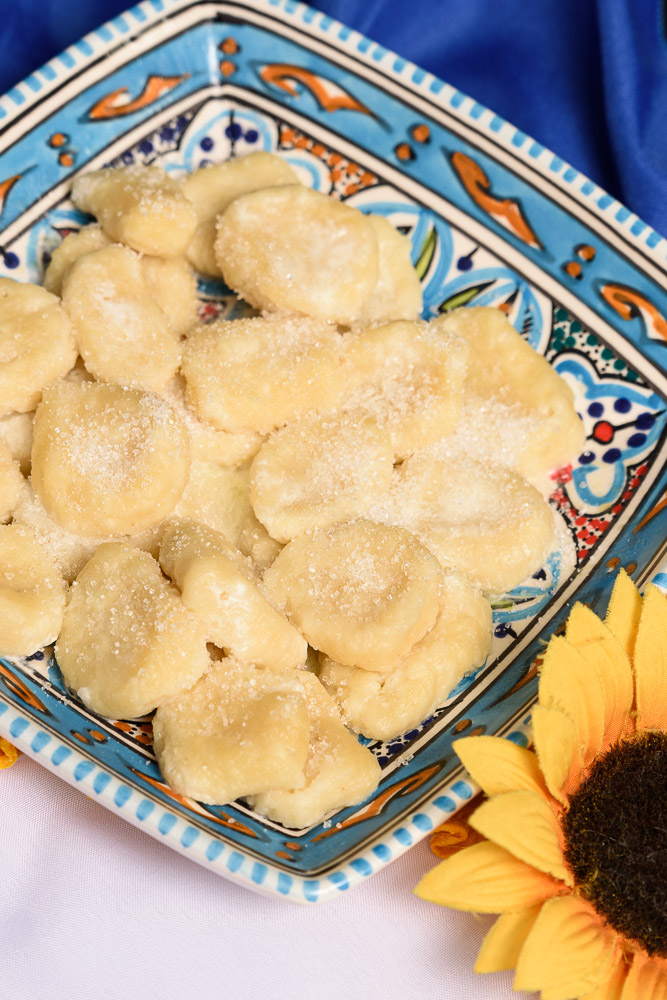 - After the dumplings have surfaced, let them boil for 3-4 minutes and take them out onto a plate. Put some sour cream, and butter, and decorated with your favorite berries.